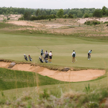 We highly recommend grabbing a fescue rescue and a hot dog on a pretzel bun at the turn. Need more? The homemade chocolate chip cookies are a Chef's kiss. After dinner on the patio, we kicked off the shoes, grabbed a drink, and headed down to the Drumlin putting course for some late night fun. From check in to check out, Erin Hills does it right.